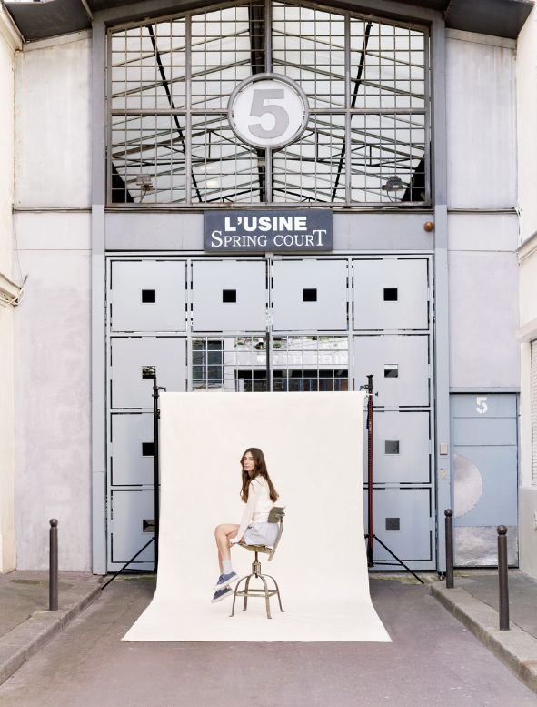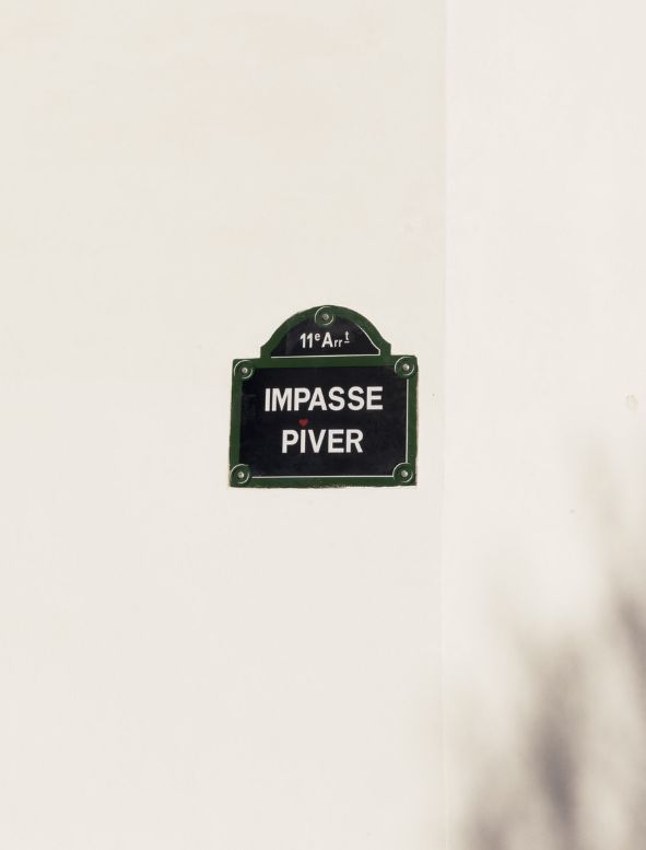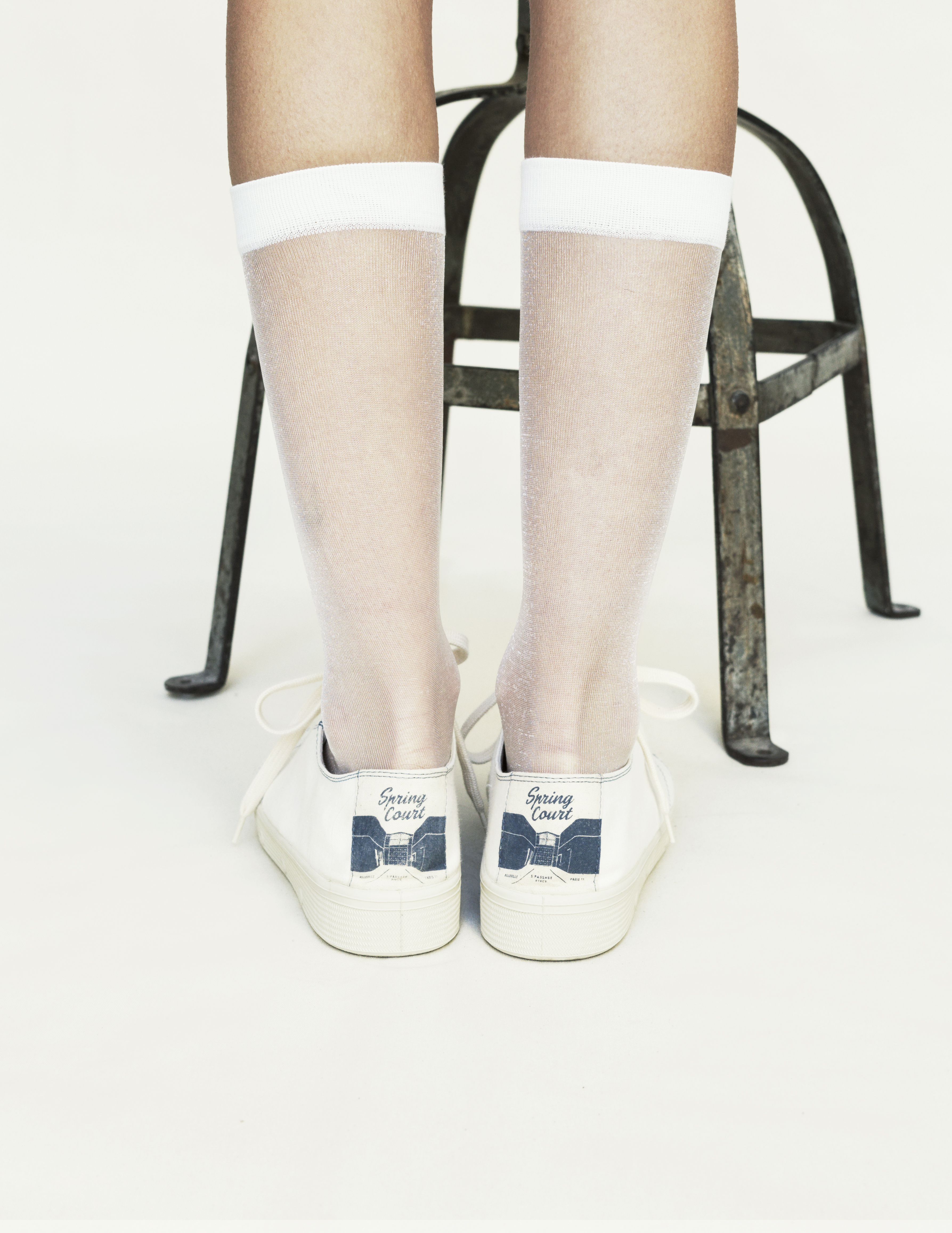 L'étiquette sérigraphiée, cousue à l'arrière de la chaussure, évoque le 5 passage Piver, adresse emblématique de la marque.